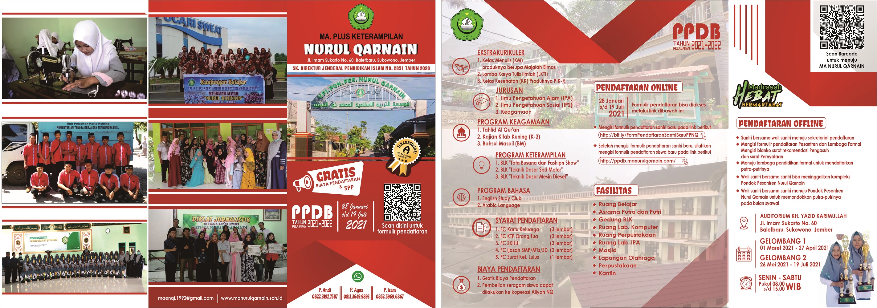 Berikut ini adalah jadwal PPDB di MA Nurul Qarnain 1. Tanggal 1 - 28 Februari 2022 sosialisasi kegiatan PPDB ke sekolah sekitar MA Nurul Qarnain. 2. Tanggal 1 Maret - 31 Juni 2022 pendaftaran secara online dan Tanggal 12 Mei – 31 Mei 2022 pendaftaran offline. 3. Tanggal 4 dan 5 Juli 2022 proses seleksi calon peserta didik. 4. Tanggal 10 Juli 2020 pengumuman hasil seleksi calon peserta didik baru. 5. Tanggal 12 Mei 2022 kegiatan daftar ulang bagi calon peserta didik di MA Nurul Qarnain
